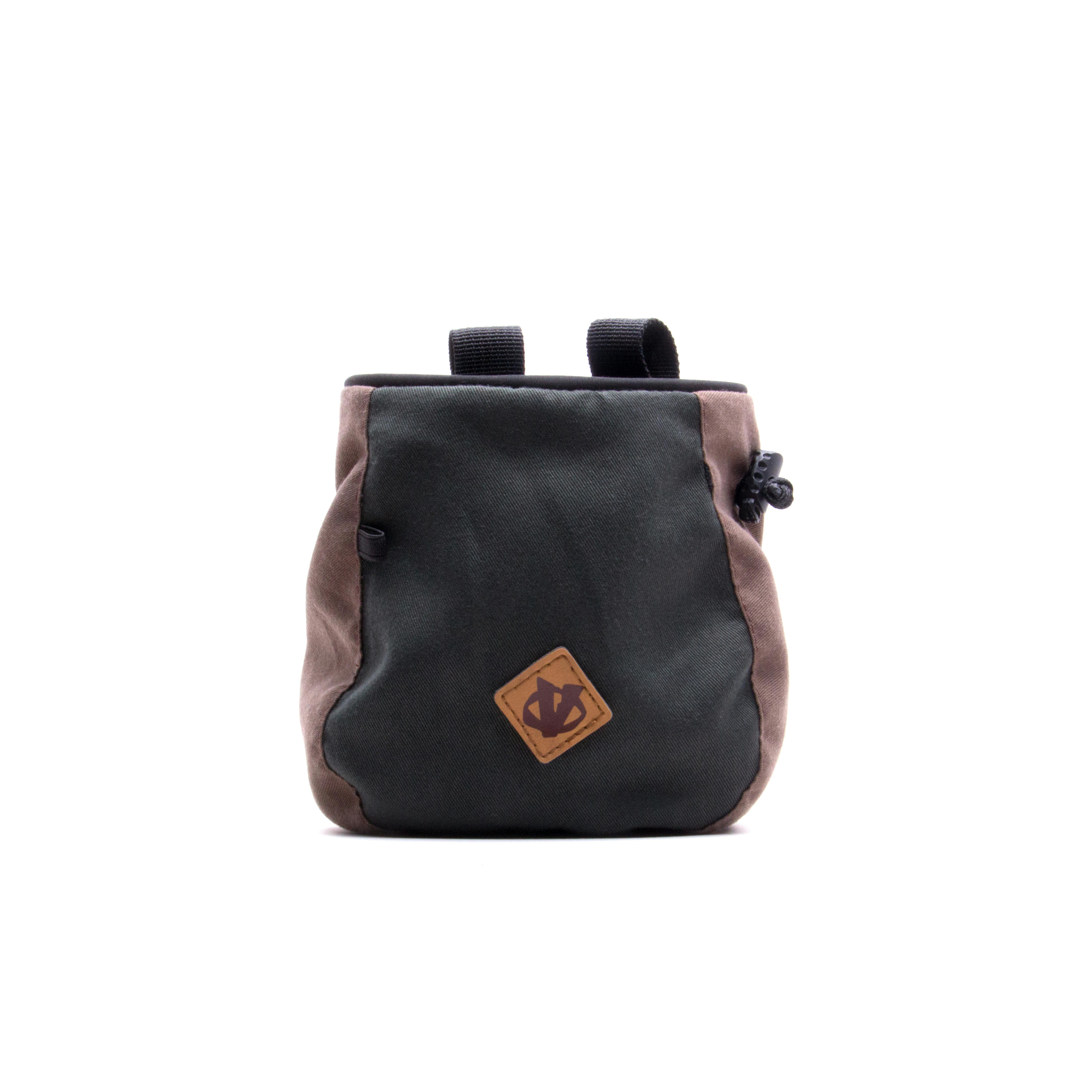 A lightweight and durable climbing chalk bag made with two toned material