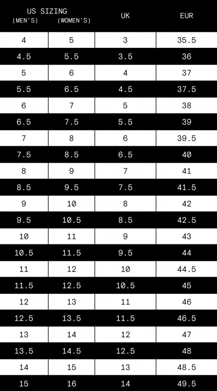 THIS SIZE GUIDE IS ONLY APPLICABLE TO STREET SHOES