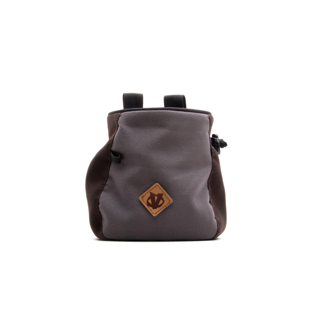 A lightweight and durable climbing chalk bag made with two toned material